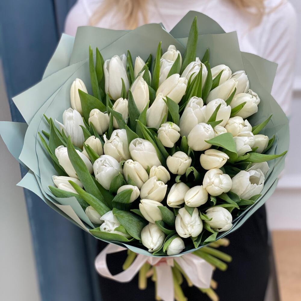 Букет белых тюльпанов 51 шт - «Рай на двоих» в Великих Луках